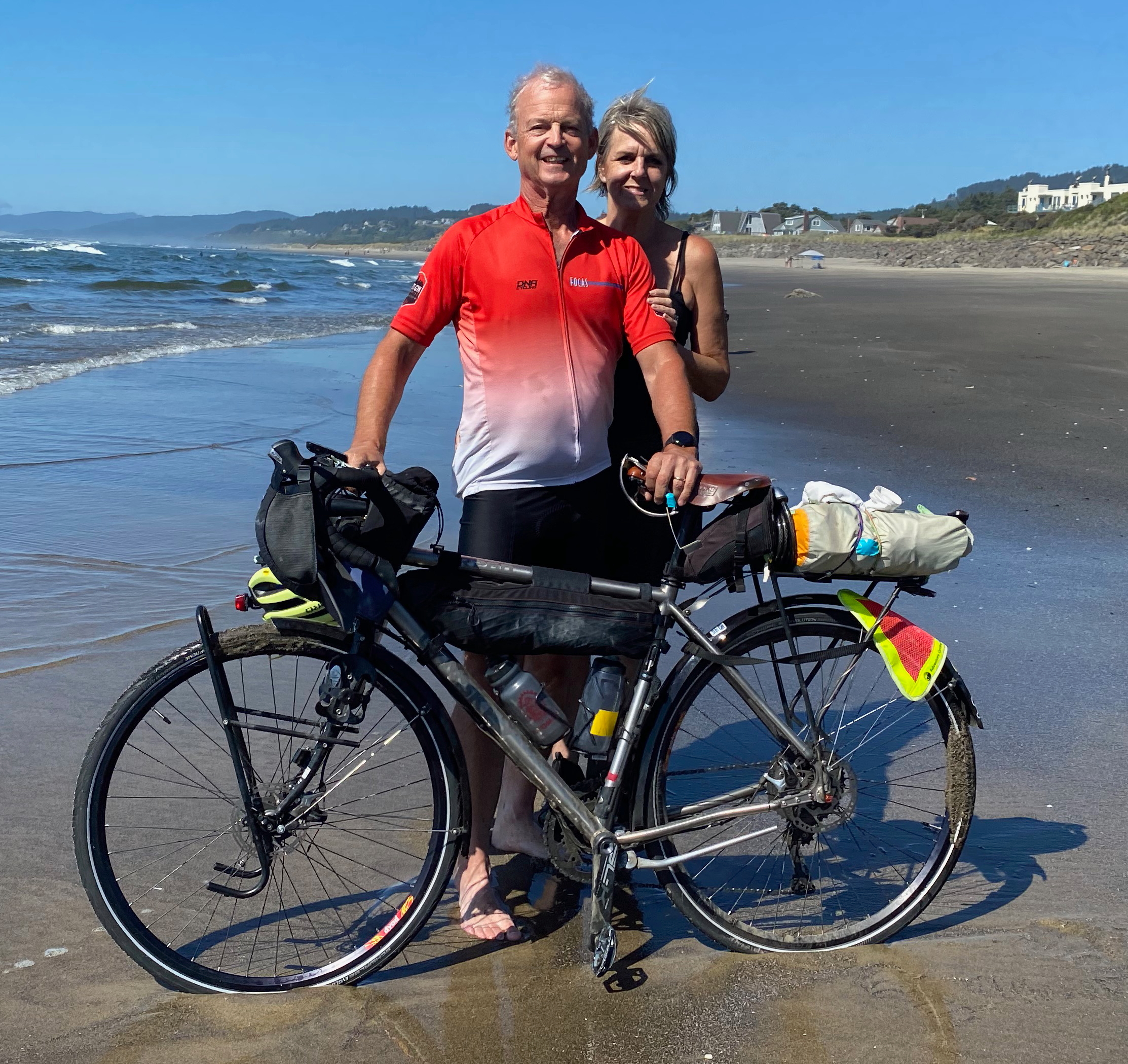 Scott and his wife Betsy after completing his ride across America in 2021.